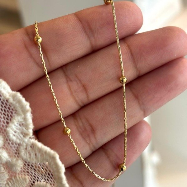 Cadena de acero dorado con bolitas