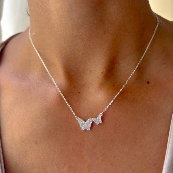 Collar de plata 925 con dije Mariposas en cubics blancos.