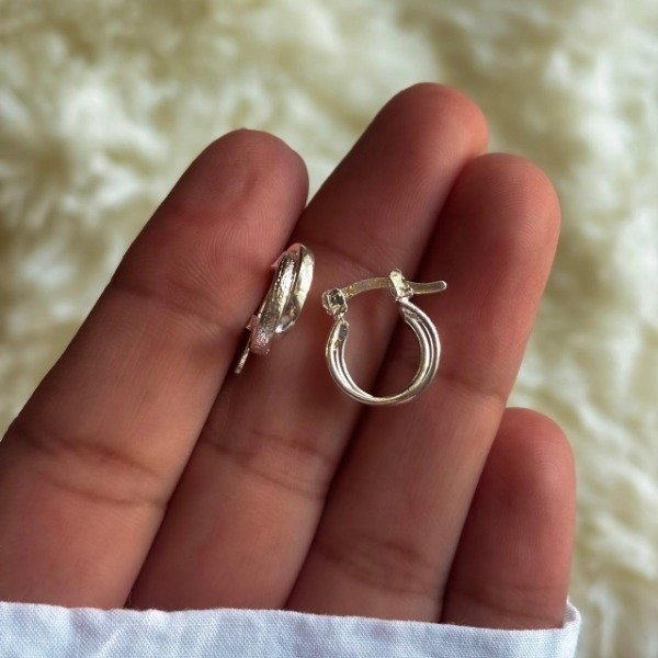 Mini argollas Erik, finas de acero blanco con diseño doble aro y acabado brillante. Clásicas, modernas y súper combinables.